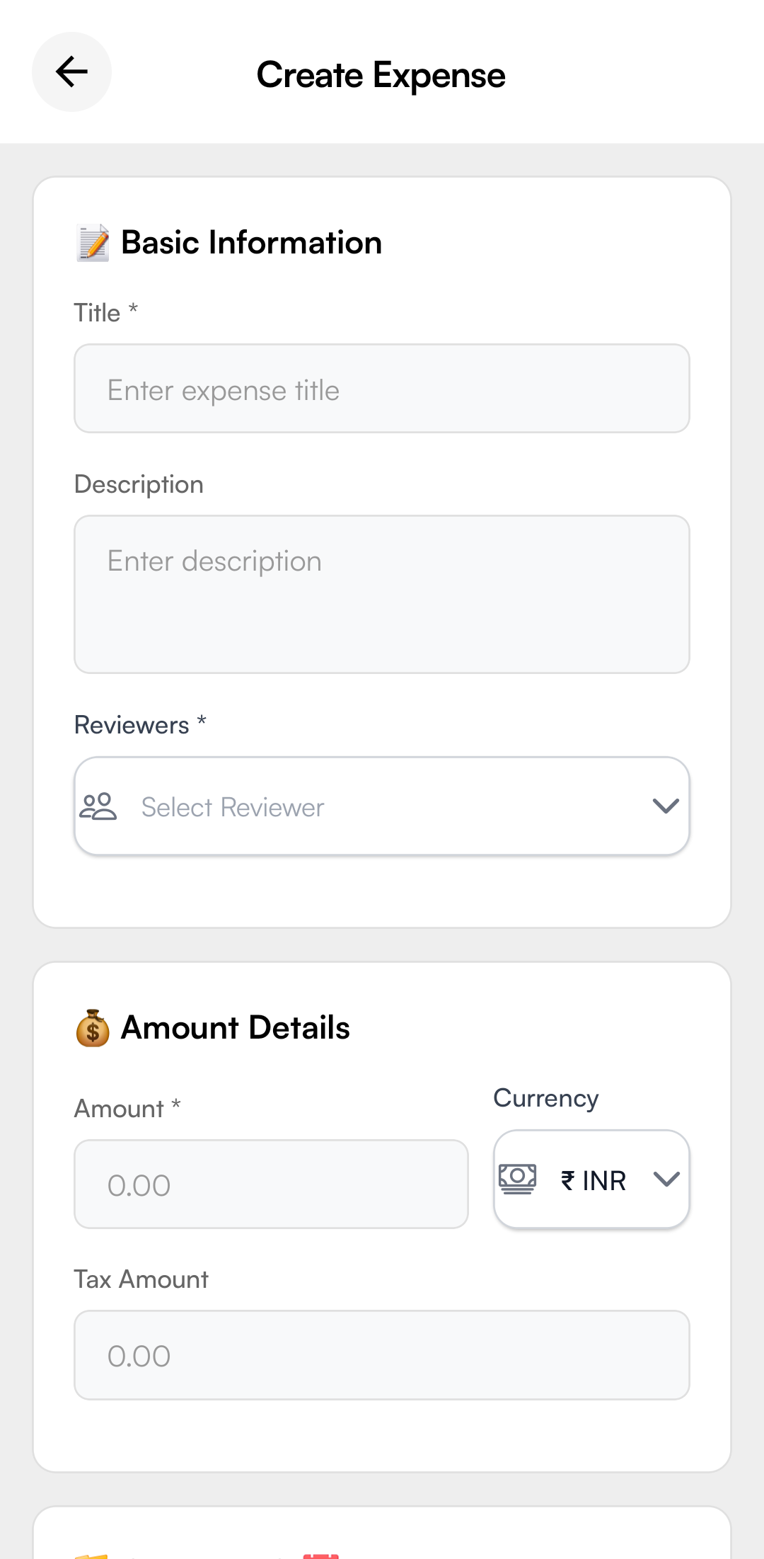 • Specify the expense amount and currency (INR)