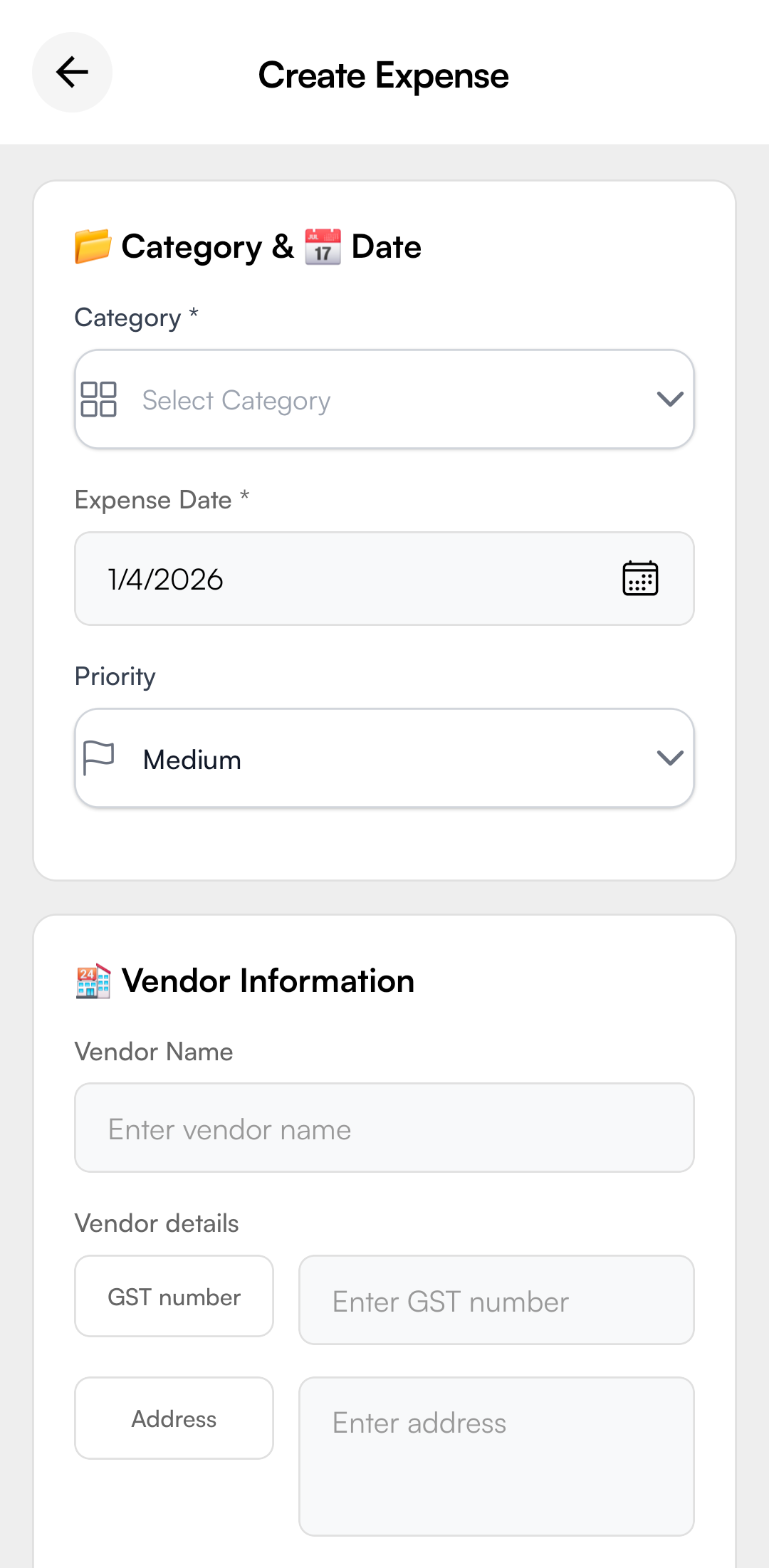 Expense Creation Form