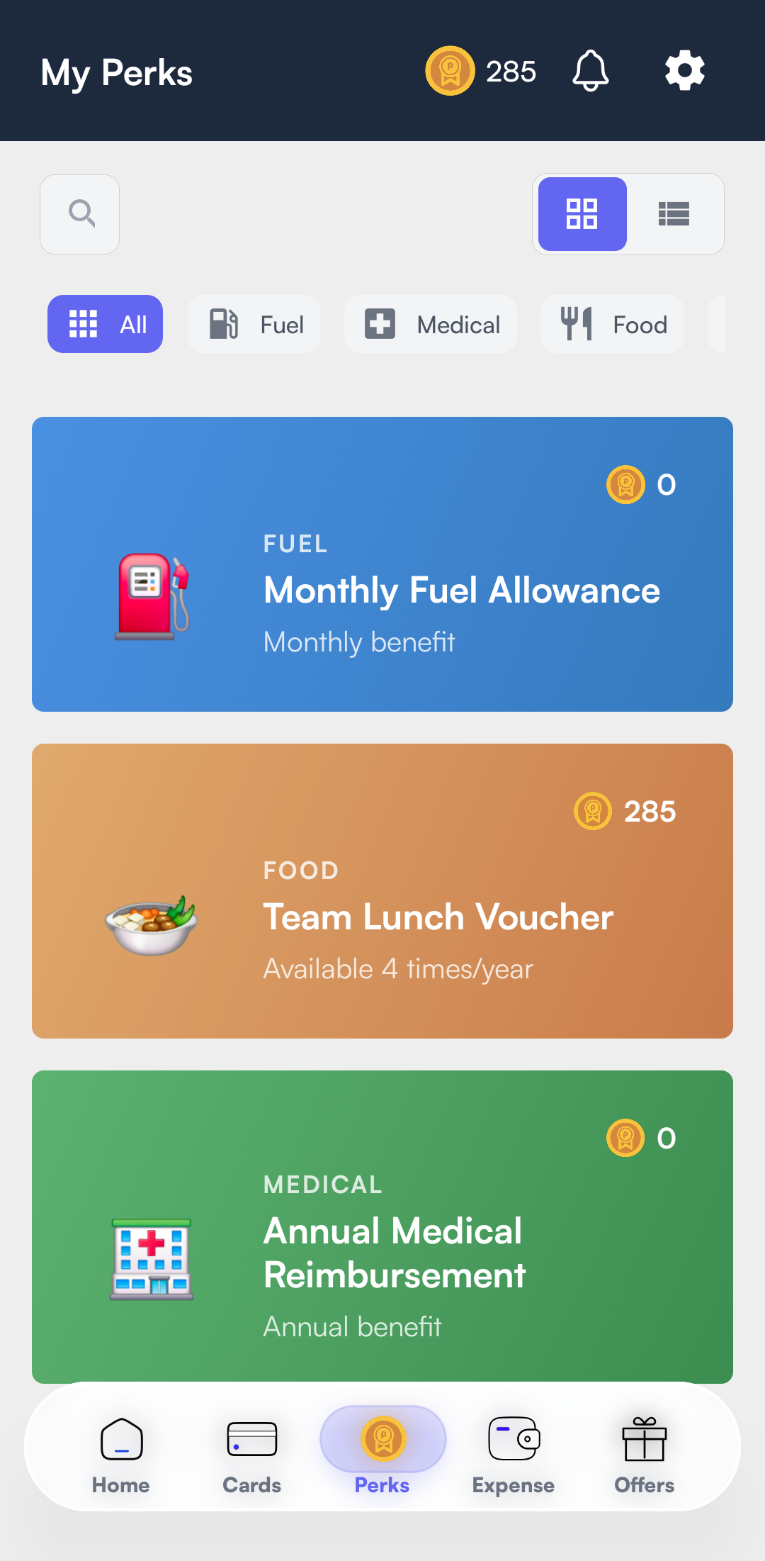 c. Click any perk to view the available perk balance.