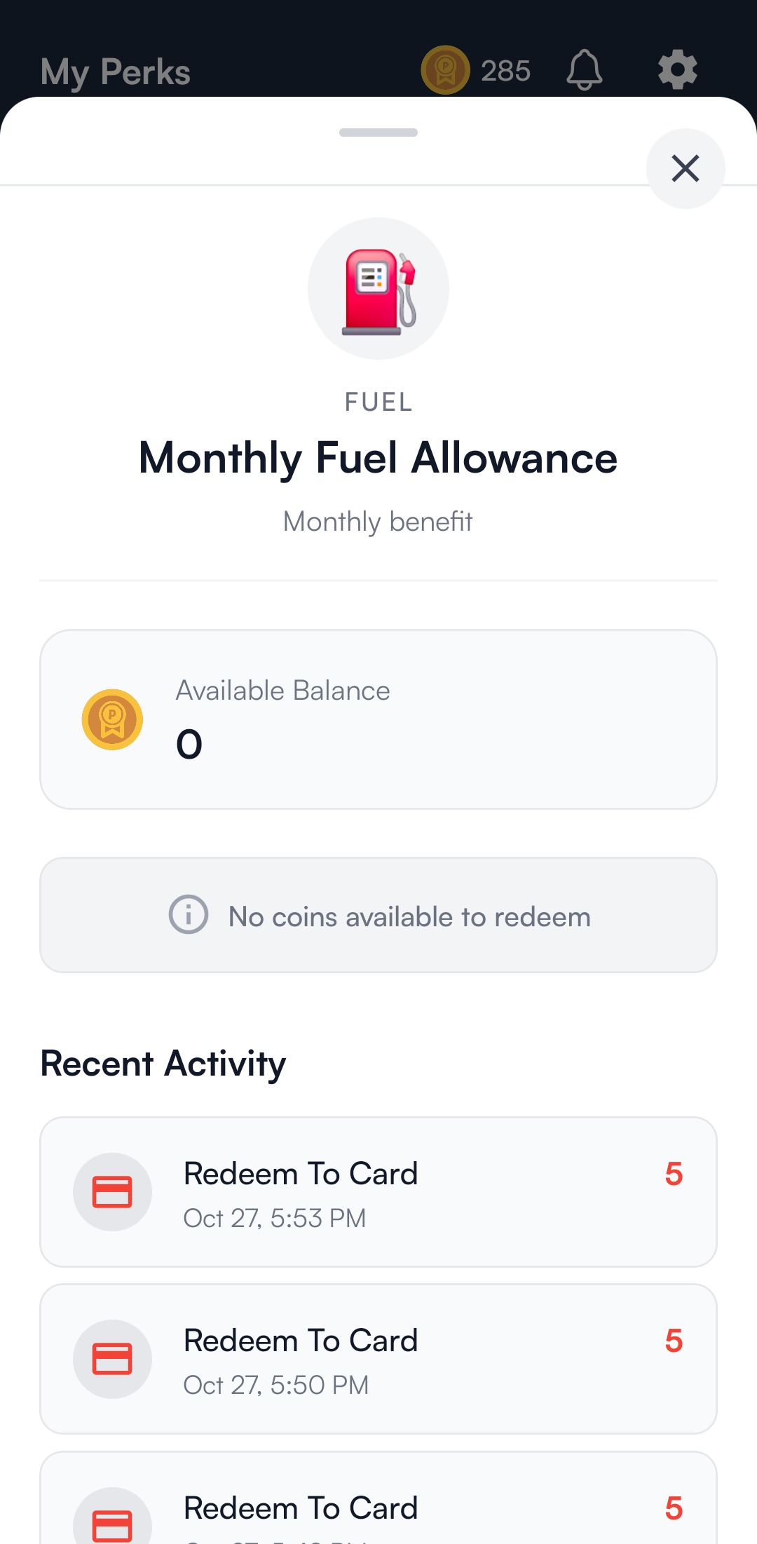 d. There is also an option to redeem your perk to card.